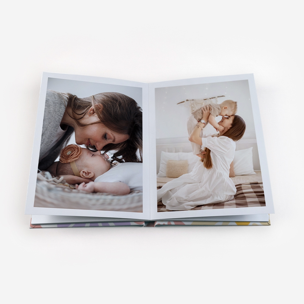 A capa rígida em cartão duro oferece proteção adicional e um acabamento elegante ao teu álbum.