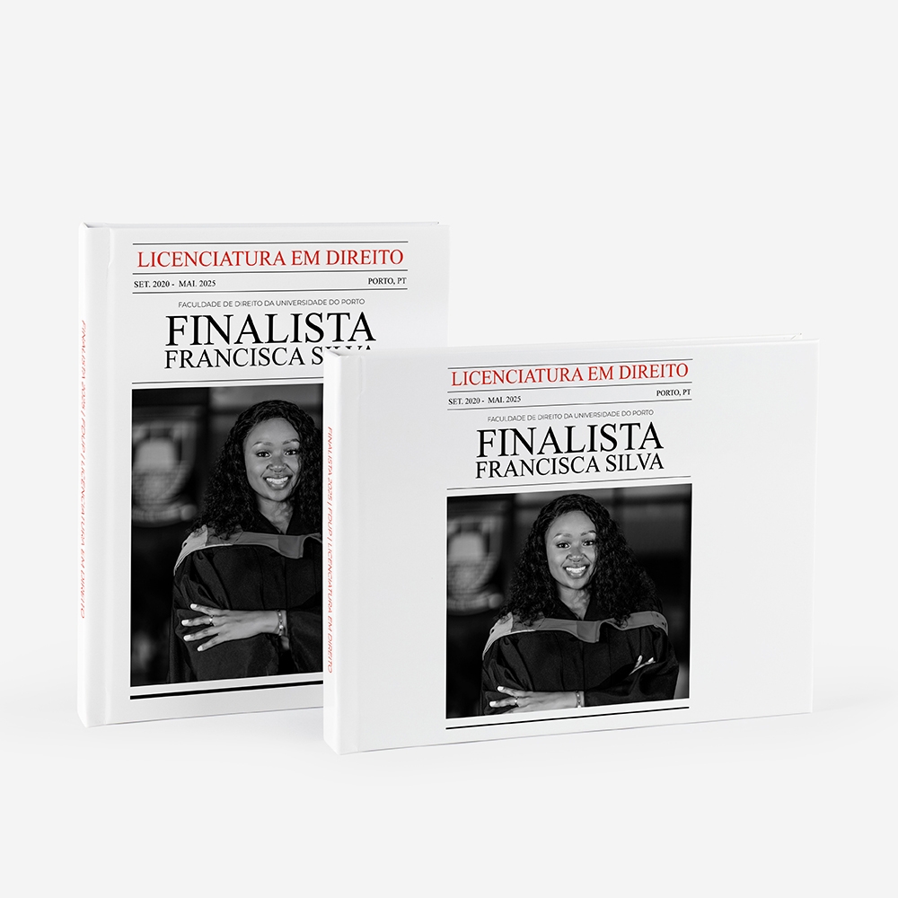 Este álbum tem o visual de uma capa de jornal, pensado para quem quer marcar a diferença. Aqui cabem as fotos da cerimónia, os momentos com os colegas, as palmas no fim do discurso e aquele orgulho de missão cumprida.
