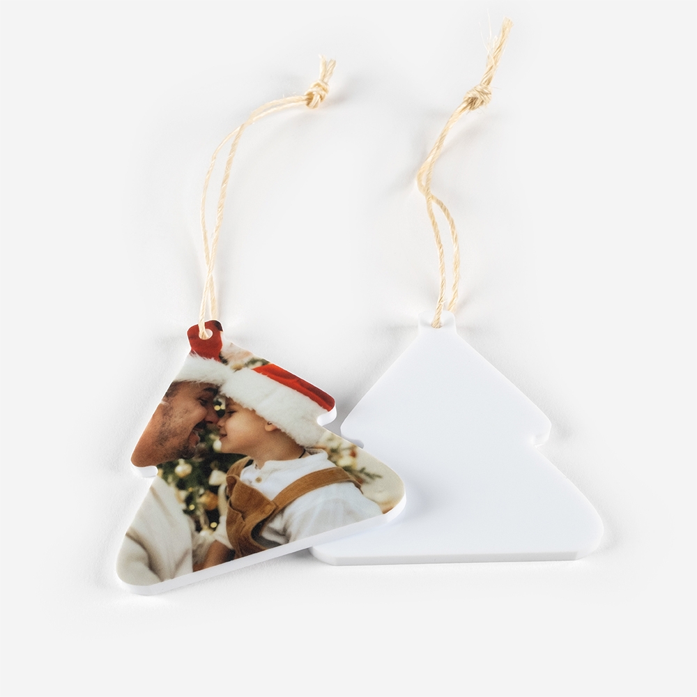 Fabricado em acrílico, este enfeite é perfeito para decorar a tua árvore de Natal. A personalização é feita através de impressão UV Inkjet Fujifilm, aplicada em apenas um dos lados.