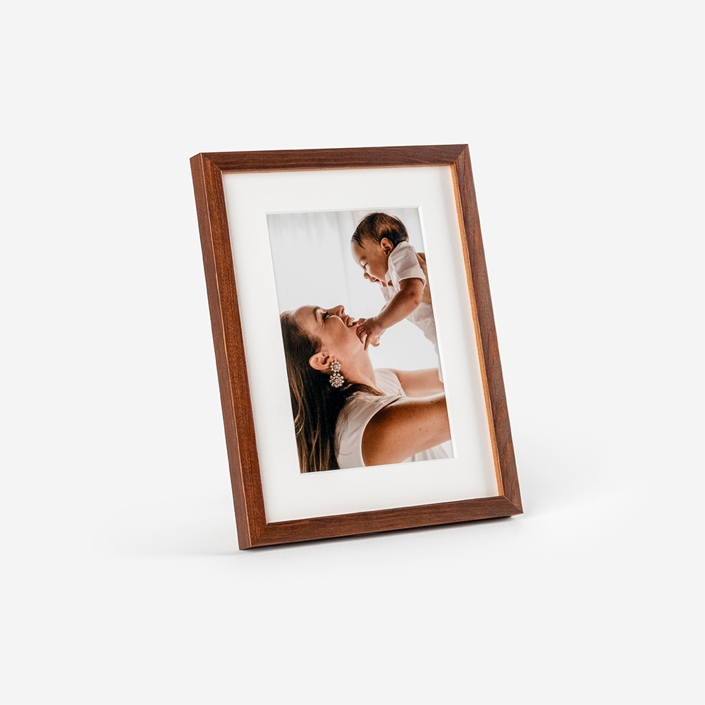 Moldura de alta qualidade, composta por uma estrutura em Madeira com proteção em vidro, garantindo durabilidade e um acabamento perfeito para destacar as tuas fotos.